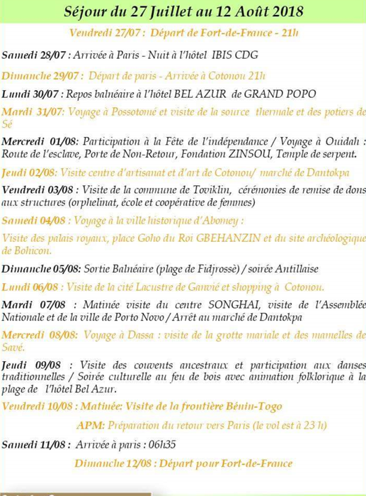 Diaspora Sans Frontières met en œuvre sa mission auprès de la Diaspora au travers d’actions à visée socialement responsable et favorisant l’accomplissement personnel des uns et des autres.Ce premier séjour a été une action précurseur de retour et réconciliation historique entre la Diaspora et sa terre ancestrale, au-delà du pan touristique. 23 martiniquais ont décidé de nous suivre dans cette superbe aventure. Nos » Aventuriers » comme nous les avons dénommés ont connu de forts moments mémorables et indéboulonnables comme ils aiment à le dire. La vie de certains d’entre eux a été chamboulée voir » reconstruite » positivement.
