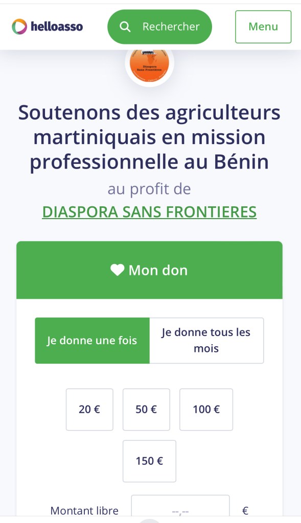 1 appel à don sur la plate forme HelloAsso faisant appel à la générosité reconnue de la population martiniquaise.